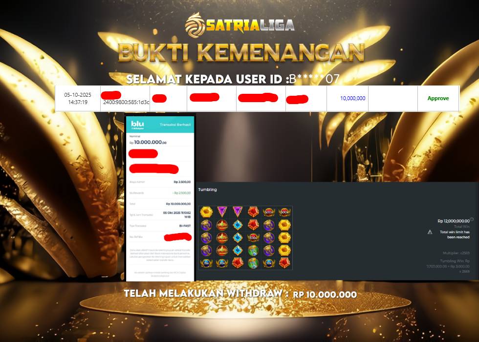 Selamat kepada user id : B*****07 telah berhasil mendapatkan kemenangan dan melakukan withdraw sebesar Rp 10.000.000